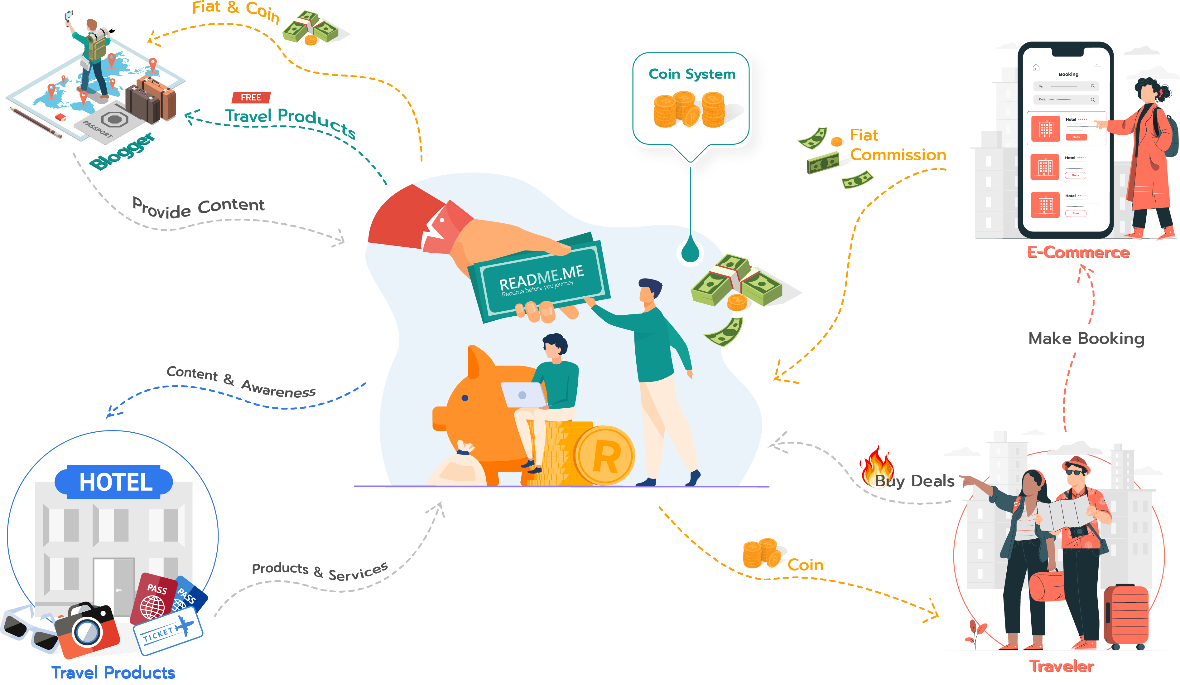 Travel Product Owners or Content Creators can swap their travel vouchers with RME coins to utilize in the ecosystem of Readme Platform.